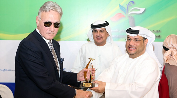 عزت أبو عوف يتلقى التكريم في "مهرجان الفجيرة الدولي للمونودراما" (المصدر)