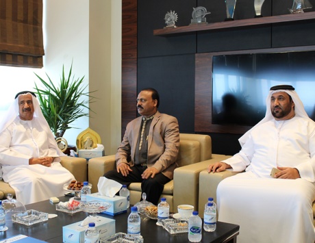 استقبل خليفة خميس مطر الكعبي رئيس مجلس إدارة غرفة تجارة وصناعة الفجيرة في مكتبه بمبنى الغرفة أمس، رجل الأعمال الدكتور فرانسيس كليتوس رئيس مجلس الإدارة والعضو المنتدب لمجموعة (NTS) التي تتخذ من أبوظبي مقراً لها وتضم 16 شركة وتعمل في مجالات التعليم وخدمات الضيافة، والهندسة، والموارد البشرية والمقاولات في دولة الإمارات، والعديد من الدول الأخرى، بحضور محمد أحمد محمد اليماحي النائب الأول لرئيس مجلس إدارة الغرفة.