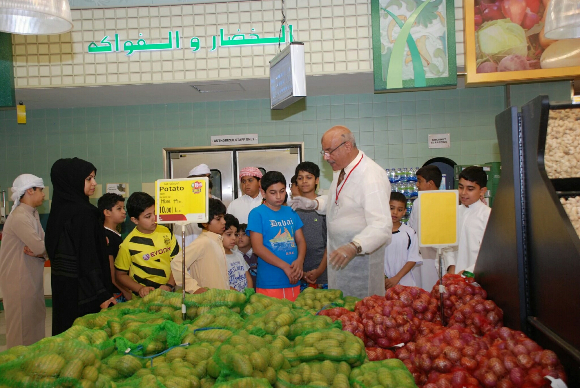 اما في الجانب التطبيقي: حيت تم اصطحاب الطلاب والطالبات في جولة في اللولو هايبر ماركت برفقة مفتش أغذية حيث تم تعريفهم بقواعد التسوق الصحي والتعرف على الأطعمة الصحية الطازجة مثل الفواكه والخضروات والألبان اللحوم.