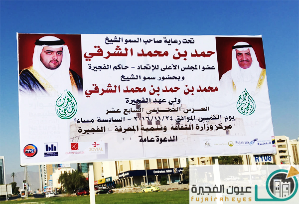 تحت رعاية صاحب السمو الشيخ حمد بن محمد الشرقي عضو المجلس الأعلى حاكم الفجيرة ..وبحضور سمو الشيخ محمد بن حمد بن محمد الشرقي ولي عهد الفجيرة سيقام العرس الجماعي السابع عشر يوم الخميس الموافق 2016/11/24م وذلك في تمام الساعة السادسة مساء بمركز وزارة الثقافة وتنمية المعرفة في الفجيرة .