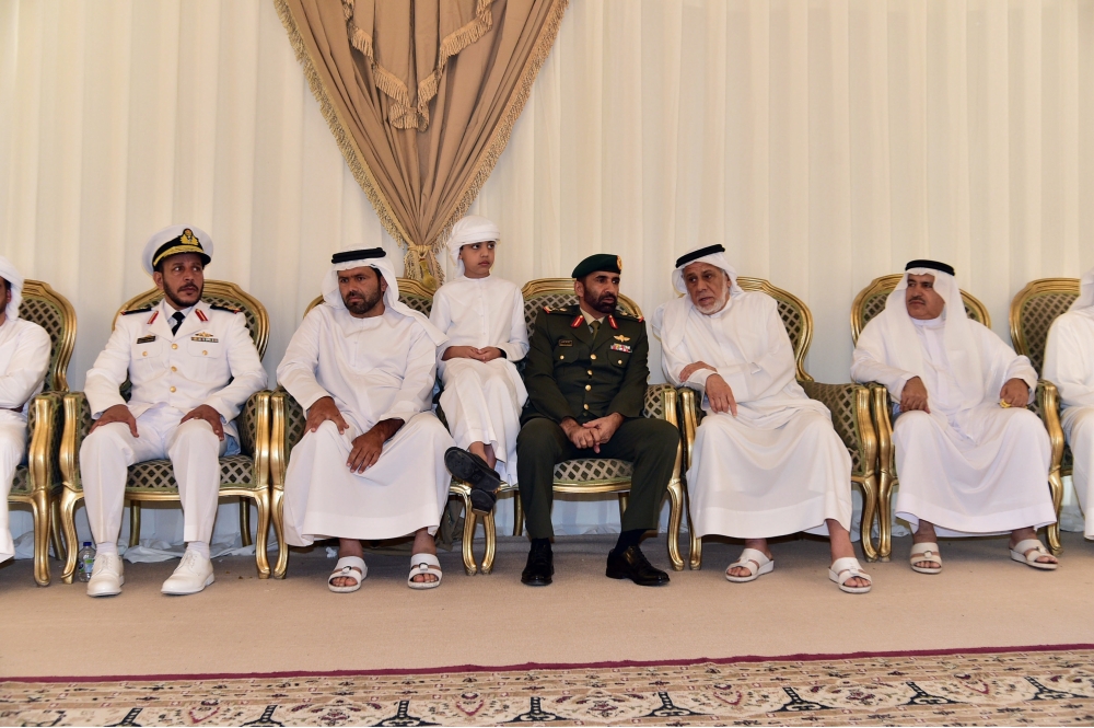 دم وفد من القوات المسلحة برئاسة قائد الاحتياط اللواء الركن سالم هلال سرور الكعبي واجب العزاء والمواساة لأسرة وذوي الشهيد الرقيب عبدالله محمد عيسى الحمادي الذي استشهد أثناء أدائه مهمة داخل الدولة، وذلك خلال زيارة الوفد اليوم لمجلس العزاء في مدينة خورفكان.