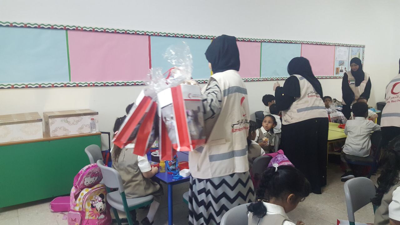نظم الهلال الأحمر الاماراتي فرع الفجيرة بتنفيذ فعالية “مرحبا مدرستي” بالتعاون مع  Our Own English High School,  بالفجيرة وذلك صباح اليوم الاثنين حيث استقبلت المدرسة والهلال الأحمر الاماراتي براعمها الصغار مع بداية العام الدراسي الجديد 2017 / 2018 في جو من المرح والسرور الذي ارتسم على وجوه أطفالها حيث كان هذا اليوم موعدا للأطفال مع المرح والتسلية وشملت الفعالية توزيع الألعاب والهدايا عليهم .