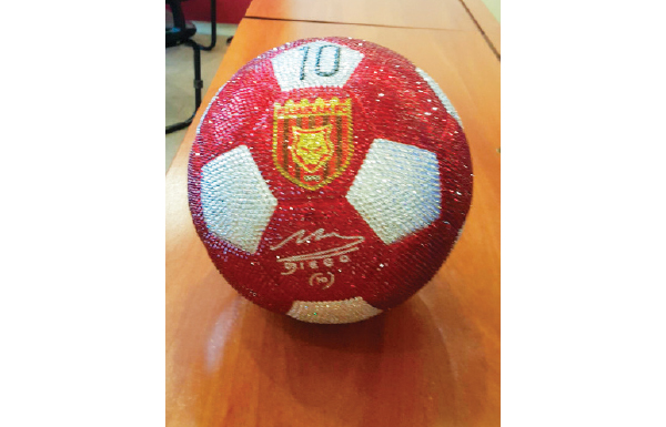 وهذه الكرة من الكريستال الخالص، وقام بتصميمها مصمم كولومبي صديق مارادونا، وتصل قيمتها المادية 100 ألف درهم. والكرة محفور عليها توقيع مارادونا، إضافة إلى رقم 10 الخاص بالأسطورة، وشعار نادي الفجيرة