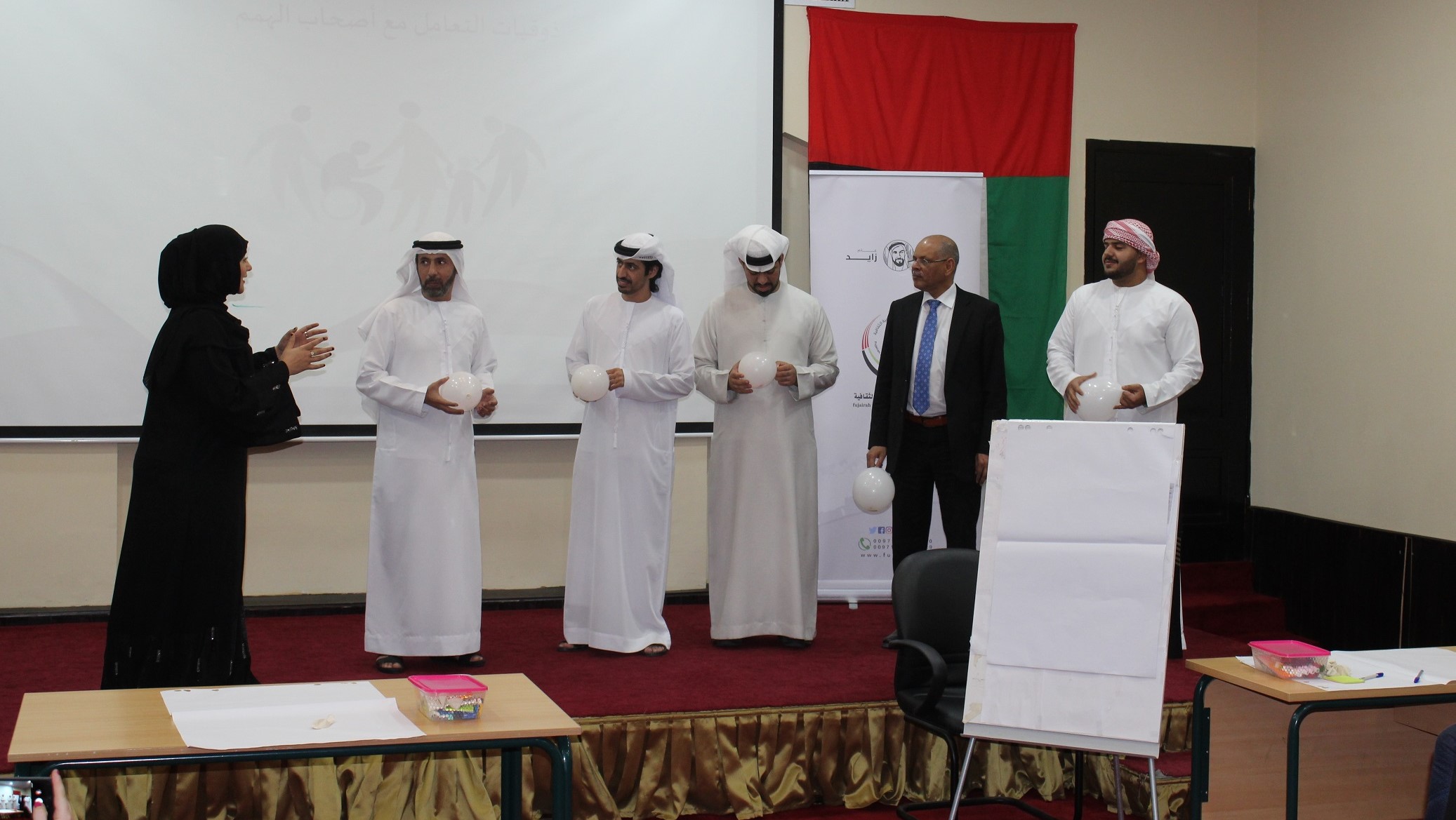 نظم مجلس زايد لأصحاب الهمم التابع لجمعية الفحيرة الاجتماعية الثقافية دورة تدريبية بعنوان “ذوقيات التعامل مع أصحاب الهمم”، قدمتها مستشارة التدريب عائشة البيرق في مسرح جامعة الفجيرة، وذلك بحضور هدى الدهماني مديرة المجلس وعدد من أكاديميي الجامعة وأهالي أصحاب الهمم.