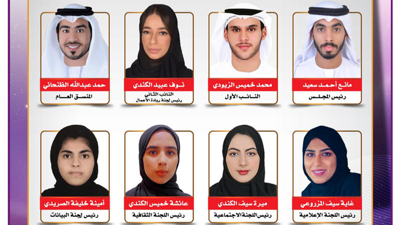 ويتألف مجلس الشباب من 8 أعضاء، وتم اختيار مانع أحمد سعيد لرئاسة المجلس، ومحمد خميس الزيودي نائباً أول للرئيس، ونوف الكندي نائباً ثانياً ورئيساً للجنة ريادة الأعمال، وحمد عبد الله الظنحاني منسقاً عاماً للمجلس، وغاية سيف المزروعي رئيساً للجنة الإعلامية، وميرة سيف الكندي رئيساً للجنة الاجتماعية، وعائشة خميس الكندي رئيساً للجنة الثقافية، وأمينة خليفة الصريدي رئيساً للجنة البيانات.