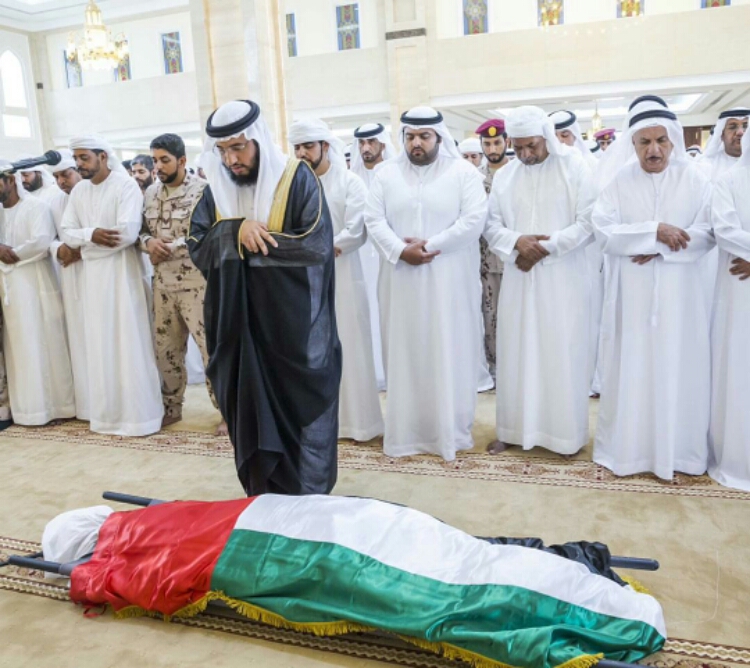 ولي عهد الفجيرة يؤدي صلاة الجنازة على جثمان شهيد الوطن يوسف الكعبي