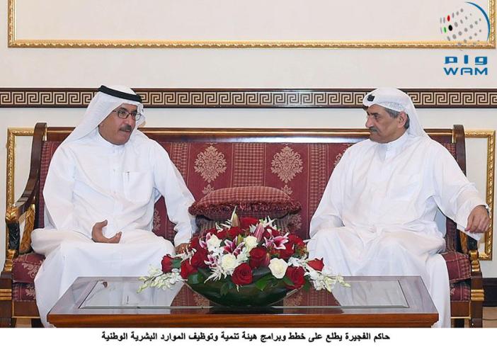 حاكم الفجيرة يطلع على خطط وبرامج هيئة تنمية وتوظيف الموارد البشرية الوطنية