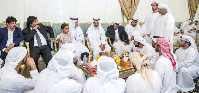 قدم صاحب السمو الشيخ حمد بن محمد الشرقي، عضو المجلس الأعلى حاكم الفجيرة، أمس، واجب العزاء إلى أسرة شهيد الوطن سلطان محمد علي الكتبي، الذي استشهد أثناء تأدية واجبه الوطني، ضمن قوات الإمارات المشاركة في عملية «إعادة الأمل» في اليمن، مع قوات التحالف العربي، الذي تقوده المملكة العربية السعودية، للوقوف مع الشرعية في اليمن.