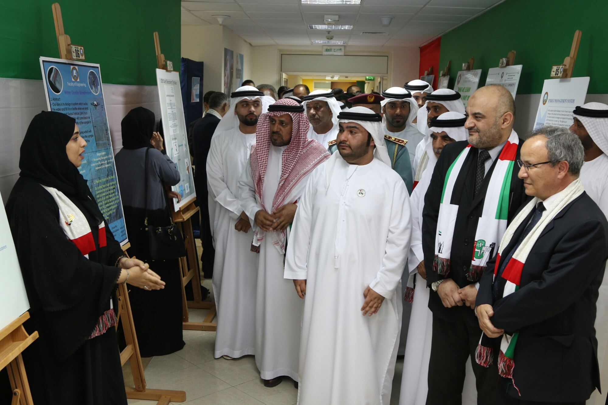 وتضمن برنامج الاحتفال باليوم الوطني لدولة الإمارات العربية المتحدة جولة للضيوف على الفعاليات المختلفة، حيث قام الشيخ أحمد بن حمد بن سيف الشرقي بافتتاح جناح التراث الذي اشتمل على عروض تراثية وثقافية وتقديم تشكيلة متنوعة من الأطباق الإماراتية التقليدية، من ثم تجول سموه والضيوف في جناح الابتكار للطلبة المتميزين بالمقر والذين فازوا بعدد من الجوائز على الصعيد المحلي والإقليمي في مجالات الهندسة وطب الأسنان وتكنولوجيا المعلومات وإدارة الأعمال والإعلام والقانون والصيدلة، ثم شاهد سموه جناح الشهيد.