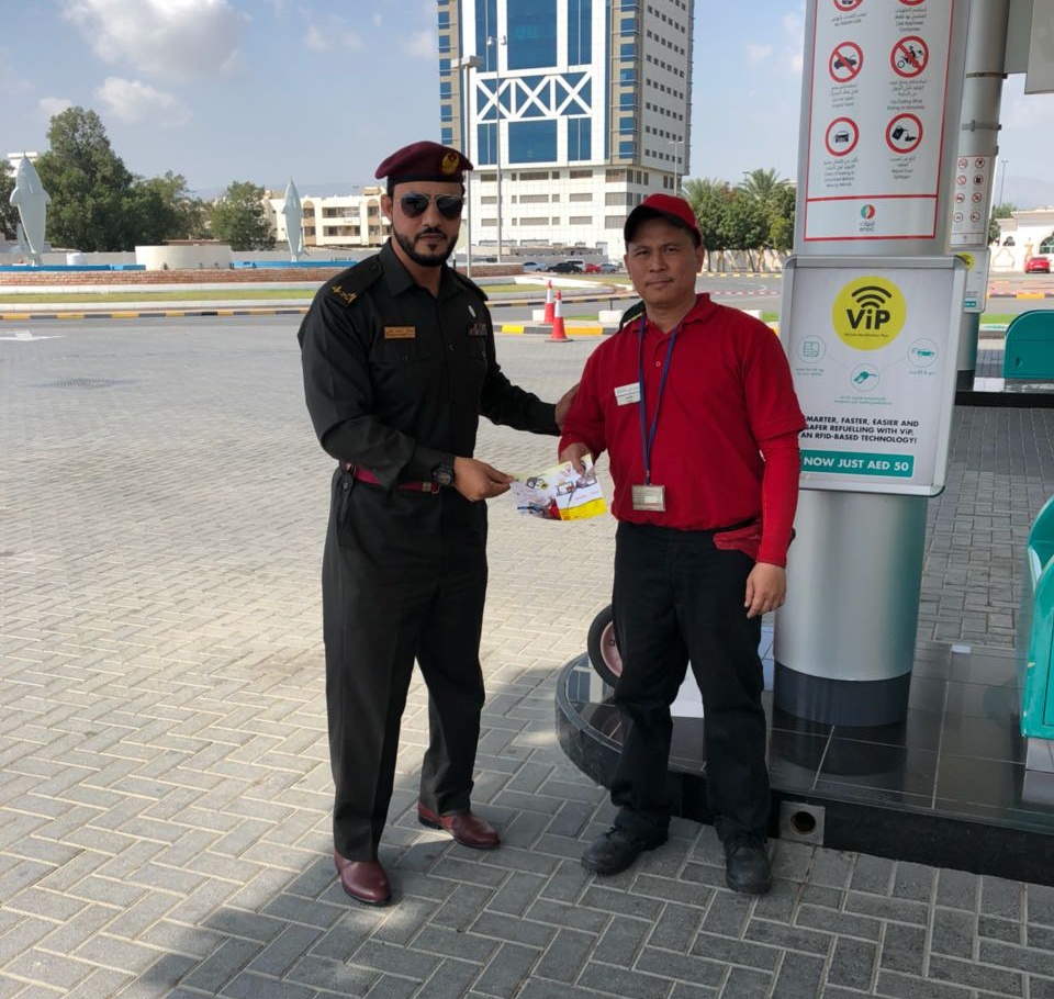 نظّمت إدارة الدفاع المدني – الفجيرة، حملة تثقيفية تحت شعار «السلامة في محطات خدمة التزود بالوقود» بإمارة الفجيرة، حيث تأتي الحملة من منطلق الحرص على سلامة المواطنين والمقيمين والعاملين في محطات البترول من حوادث حرائق السيارات.